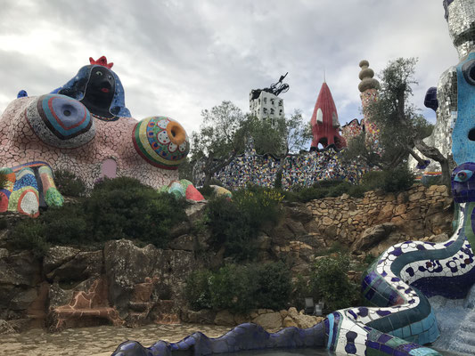 Bei einem Italienbesuch in der Nähe der Maremma darf bei uns natürlich ein Besuch des Tarotgartens von Niki de Saint-Phalle nicht fehlen. Um die Jahreszeit macht er erst am Nachmittag auf und das passt gut in unseren Plan.