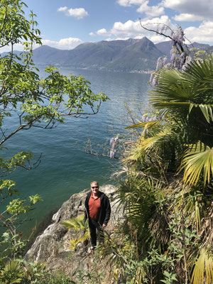 Hier habe ich für zwei Nächte einen wunderschönen Campingplatz in der Nähe von Luino reserviert (Camping Lido, Empfehlung von Judith), auf dem wir auf einem Platz in der ersten Reihe am See stehen. Dies ist ein kleiner Platz, der noch nicht so überkandidelt ist und uns gut gefällt. Herrlich.