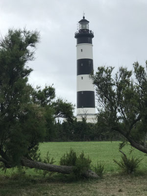 Am Abend des ersten Tages radeln wir noch zum Leuchtturm an die Spitze der Insel, zum Phare de Chassiron. Er ist eines der ältesten (von 1836), noch aktiven Leuchtfeuer Frankreichs, inzwischen aber ganz modern computergesteuert.